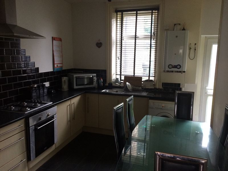 Large Modern kitchen diner with built in electrc fan oven and gas hob.